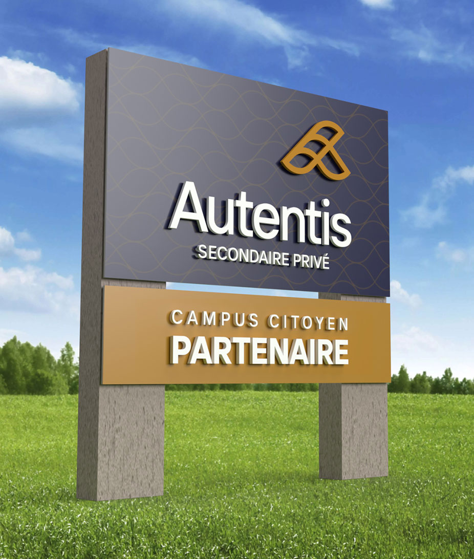 Nous avons créé le nom Autentis qui impose un univers relié à l’authenticité. Cela facilite un discours tant corporatif que citoyen. Le nom réfère à des notions telles que la vérité, la tradition, la positivité, l’historicité, la justesse ainsi que les valeurs fondamentales en éducation. Les connotations spontanées du nominal s’avèrent nobles et impliquées.