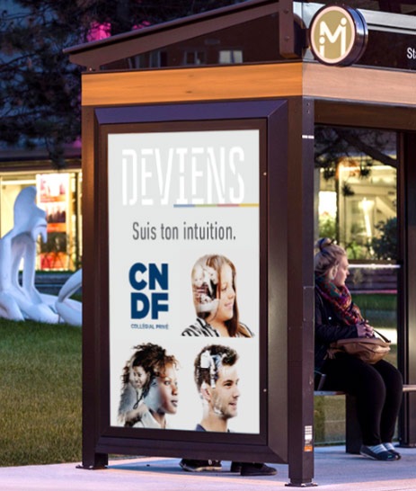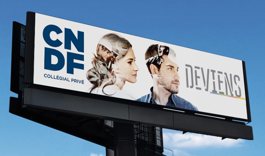 Les institutions privées de niveau collégial (CÉGEP) ne sont pas nombreuses au Québec. Elles doivent donc se démarquer et exprimer leur différenciation dans un marché où l'offre est orientée sur la gratuité. En 2011, Parallèle fut d'abord mandaté pour réaliser la stratégie de marque du CNDF. De cette stratégie le positionnement du CNDF fut défini clairement : CNDF, un lieu privilégié et unique pour devenir une personne transformée. De ce positionnement fort a découlé la création de la Zone de transformation. Cette Zone distinctive été le concept central des communications durant les trois premières années. Puis, en 2014, nous avons fait évoluer le concept vers une idée qui simplifiait le message à une idée découlant d'un manifeste de marque inspirant. C'est à cette occasion que nous avons créé la marque de communication CNDF pour mieux connecter avec la clientèle de jeunes étudiants rejoints par l'entremise des réseaux sociaux et autres médias conventionnels.