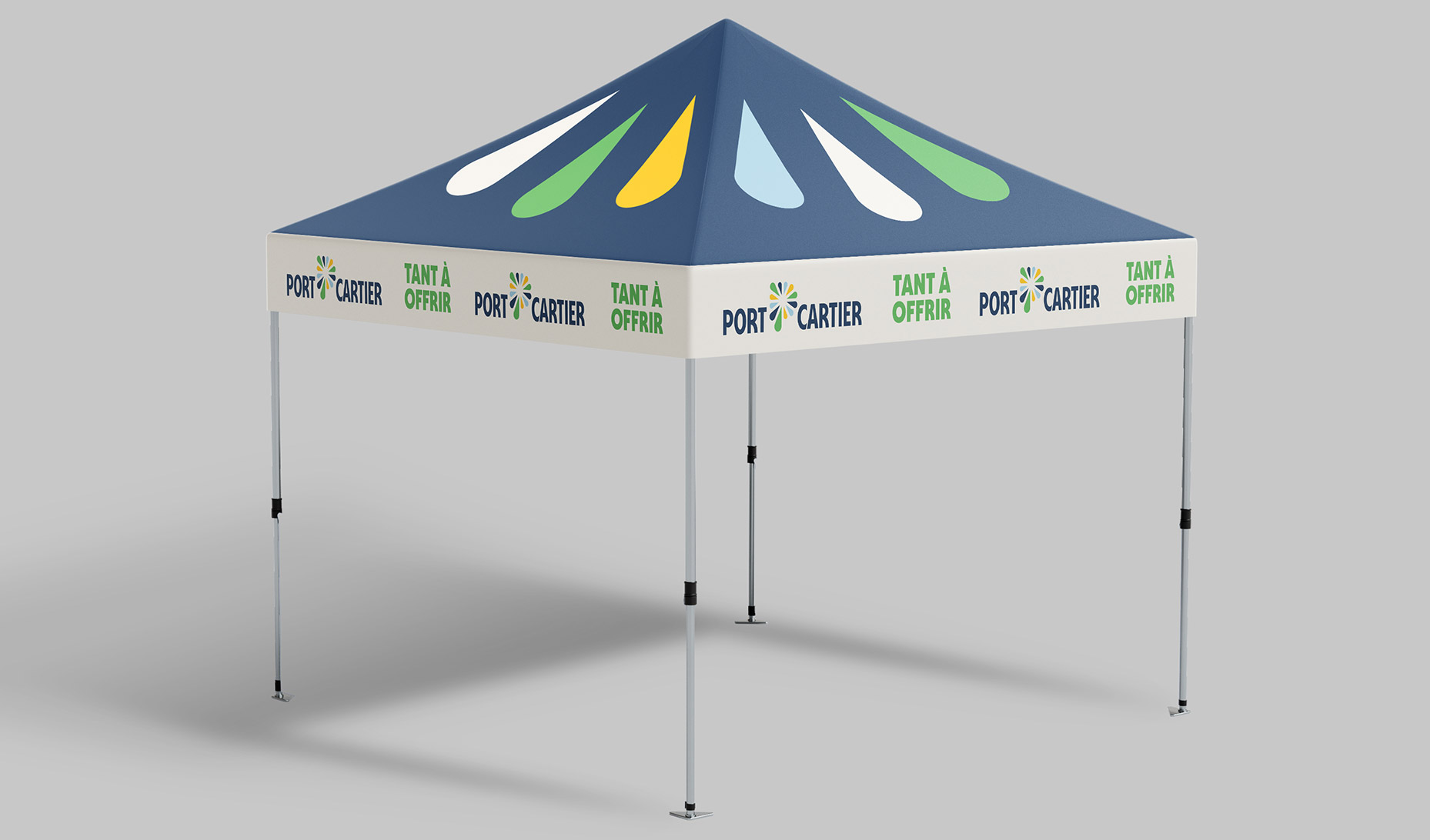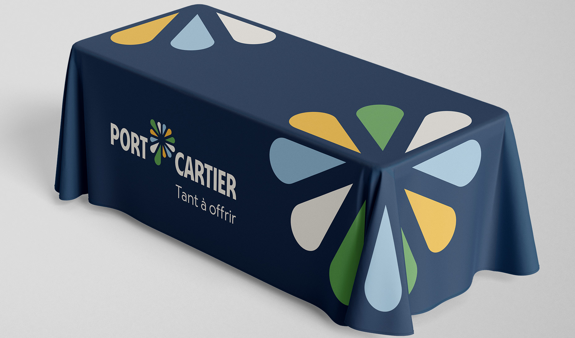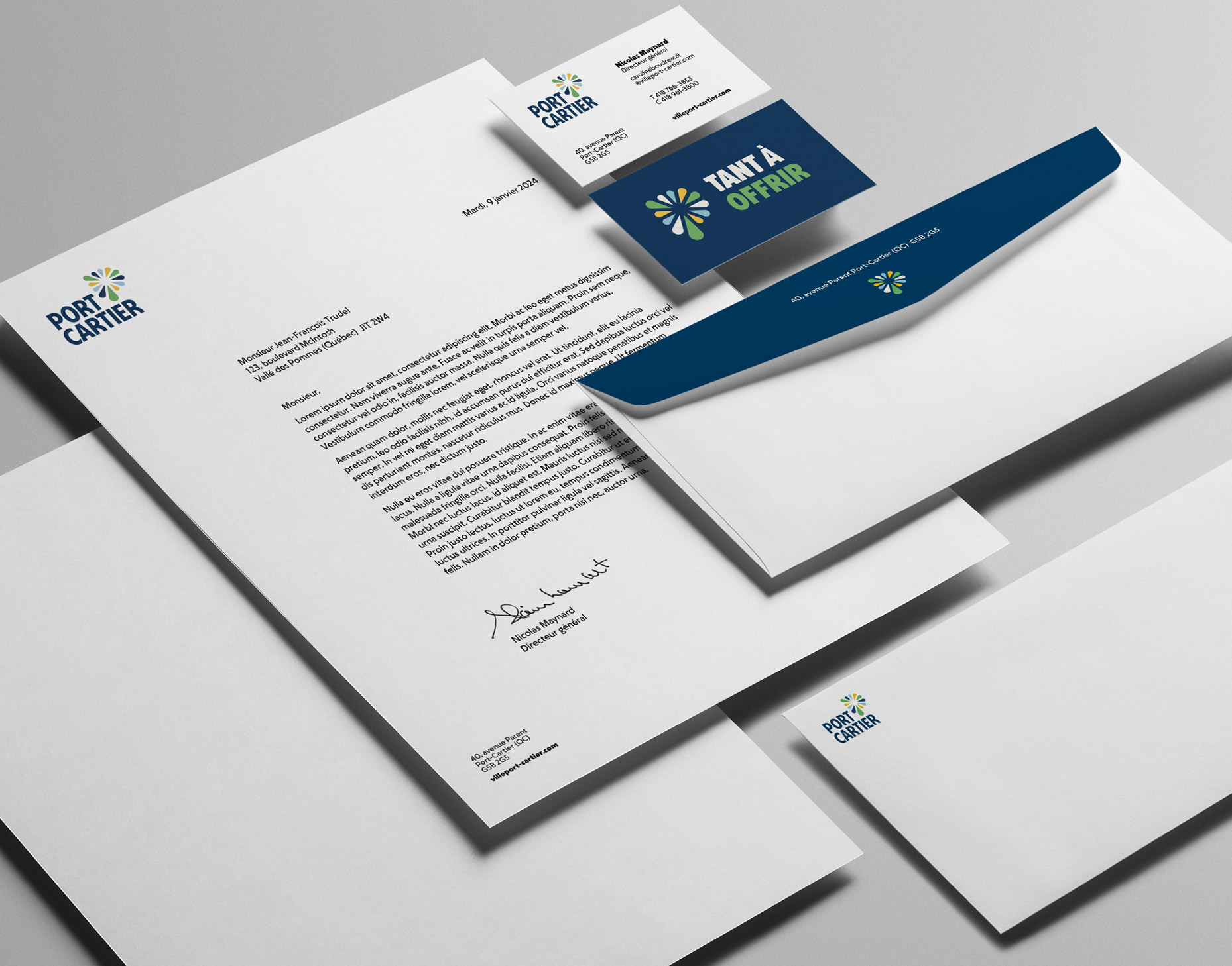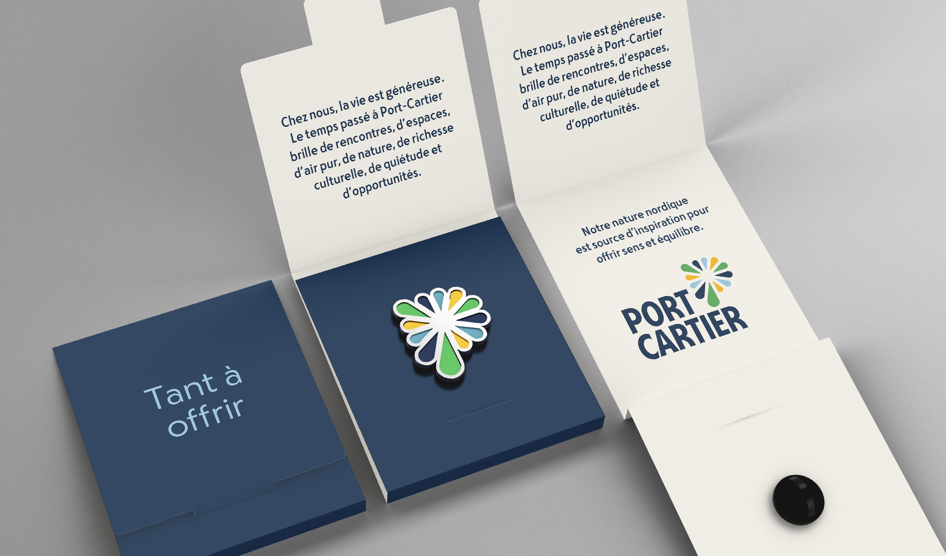 La signature de marque Tant à offrir combinée au symbole de la lettre P qui exprime le dynamisme et l'épanouissement d'une ville tournée vers l'extérieur est un rappel constant du positionnement de la Ville auprès des Port-Cartois. Elle communique une idée maîtresse dans chaque geste de communication. Cette signature de marque permet d'arrimer tous les messages sous une idée forte et singulière pour hausser le capital de marque.